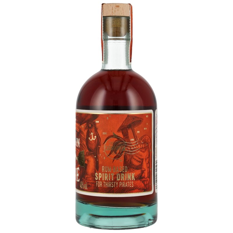 Captain Cane auch unter schwarzer Flagge nachhaltig. Seine Flaschen sind zu 100 Prozent recycelt.